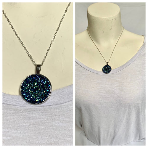 Bright Blue Druzy Style Circular Pendant Necklace 25mm (Copy)