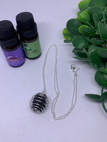 Diffuser Necklace-Round Silver Cage with Black Lava Bead-Silver or Gold
