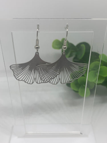 Metal Laser Cut Gingko Leaf Dangle Earrings